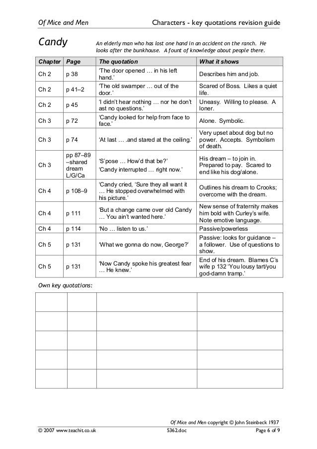Of Mice And Men Character Key Quotations Miss Ryan S Gcse English Media